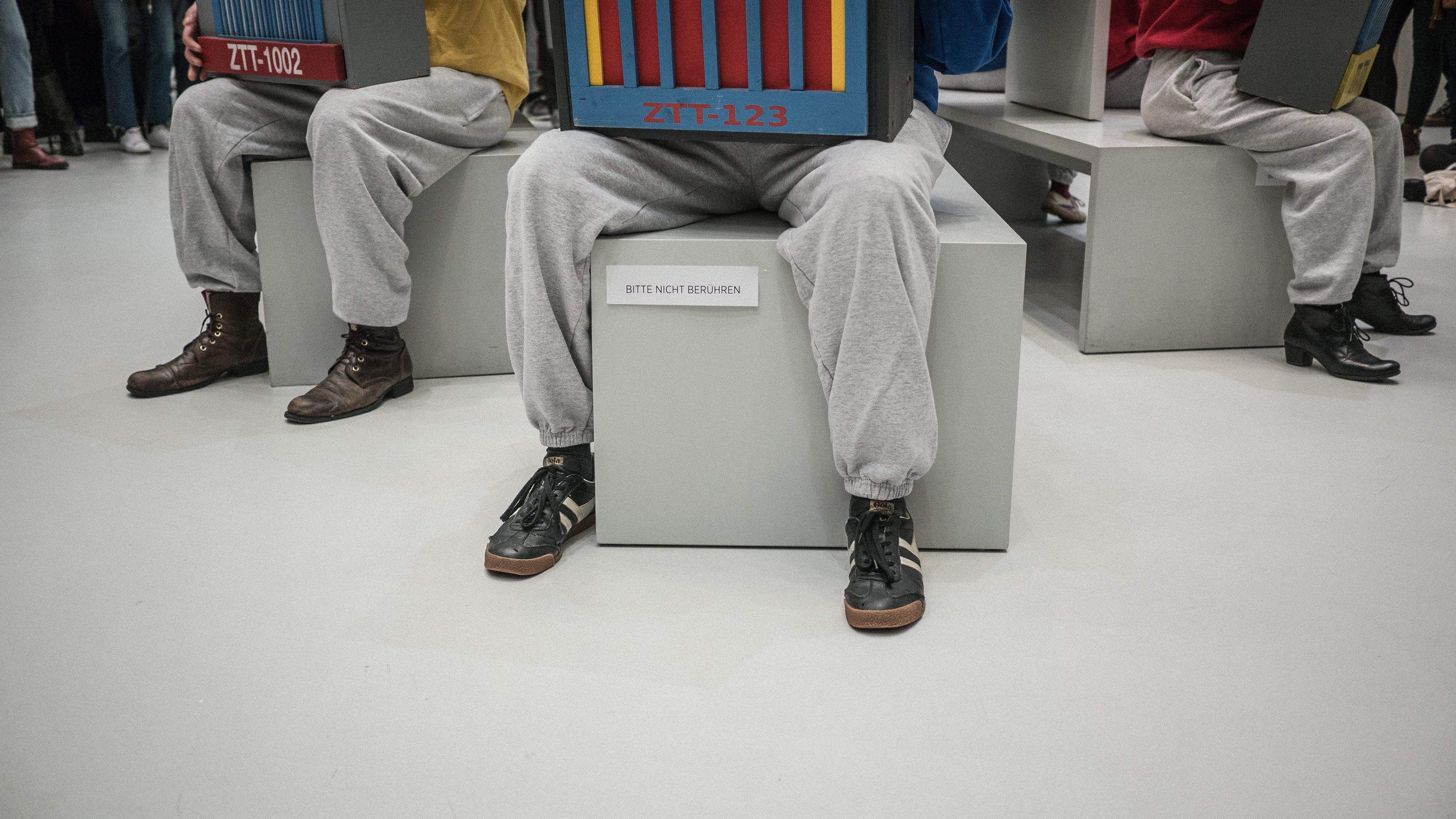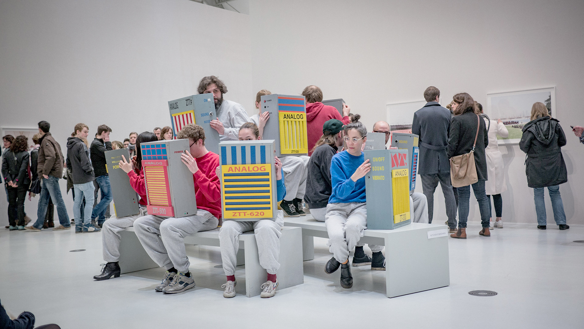 Inspired by the intonarumori (noise-intoners) the Italian Futurist Luigi Russolo (b. 1883) invented, the Krachkisten or noise boxes used in the orchestra’s concerts are homemade analogue instruments enhanced with electronic components taken from dismantled children’s toys. The presentation in an exhibition space highlights the modernist-looking design of the boxes, lending them a sculptural appeal that complements their functionality. An inspriration for the visual aspect of the project is somehow Russolo’s influence for Piet Mondrian’s concept of music. A few months after hearing Russolo’s intonarumori, Mondrian turned his thoughts to music in an essay published in the Dutch art journal De Stijl. Here Mondrian extended his neoplastic aesthetic on the basis of a sound-color correspondence, conceiving of music as an essentially plastic art: “Tone like color is free of volume,” he wrote. “Thus music can immediately follow the lead of painting.” According to Mondrian, the fundamental duality of neoplastic music is the opposition of “tones” and “nontones” (or “determinate noises”), corresponding to the use of color and noncolor in painting. Mondrian proposed dividing tones and nontones into three types, corresponding to the three primary colors and the three “noncolors.” These tones and nontones are not timbres in the conventional sense but rather fully determinate sonic events, invariably fixed in duration, volume, and presumably, pitch.