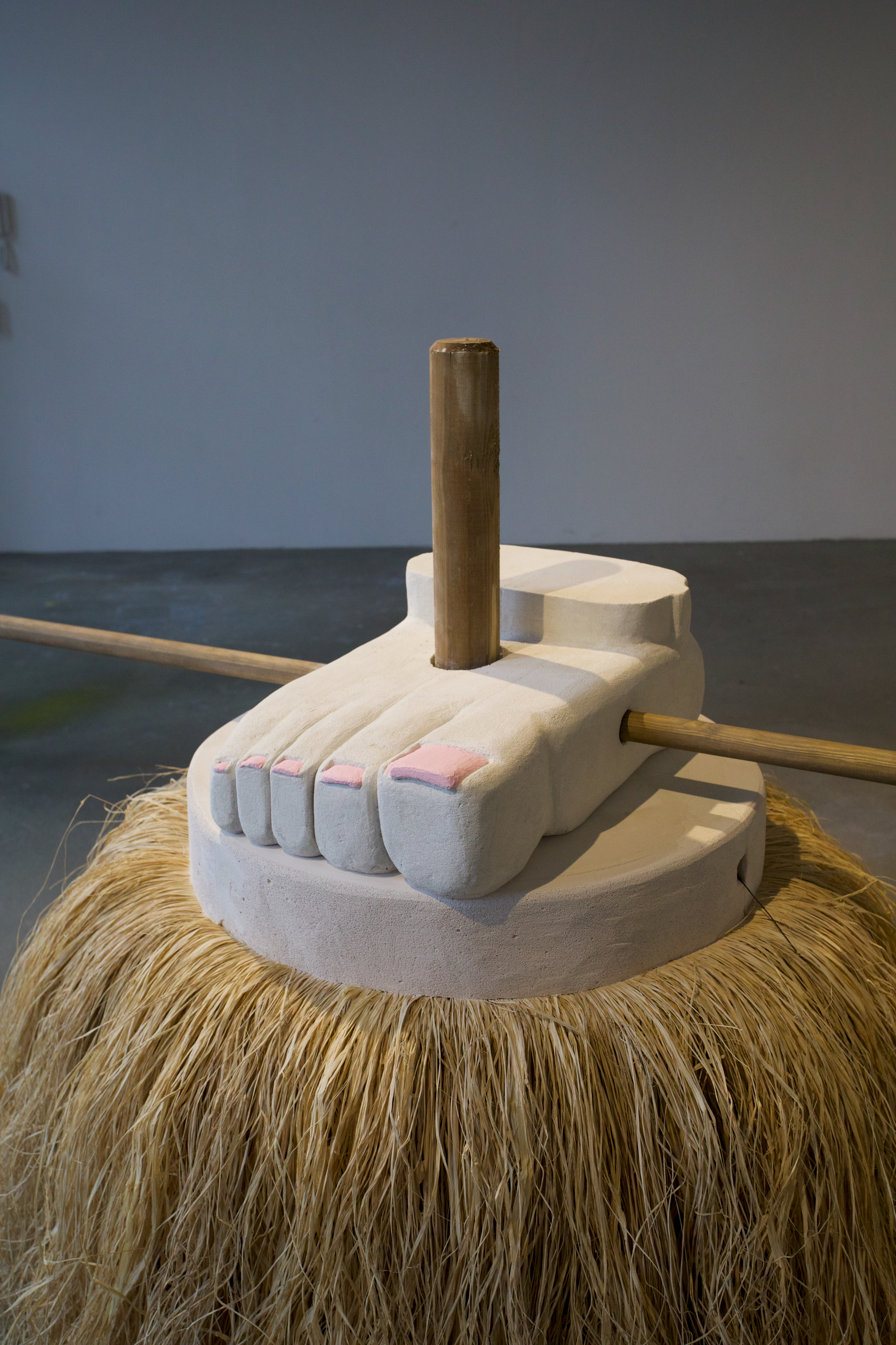 By juxtaposing self-built musical instruments—sculptural works that could be described as “sound objects”—with future-oriented technologies such as 3D holograms and a singing goat robot a dystopian setting is created to accommodate an AI supported musical piece based on duets between the robot goat and a hologram girl.