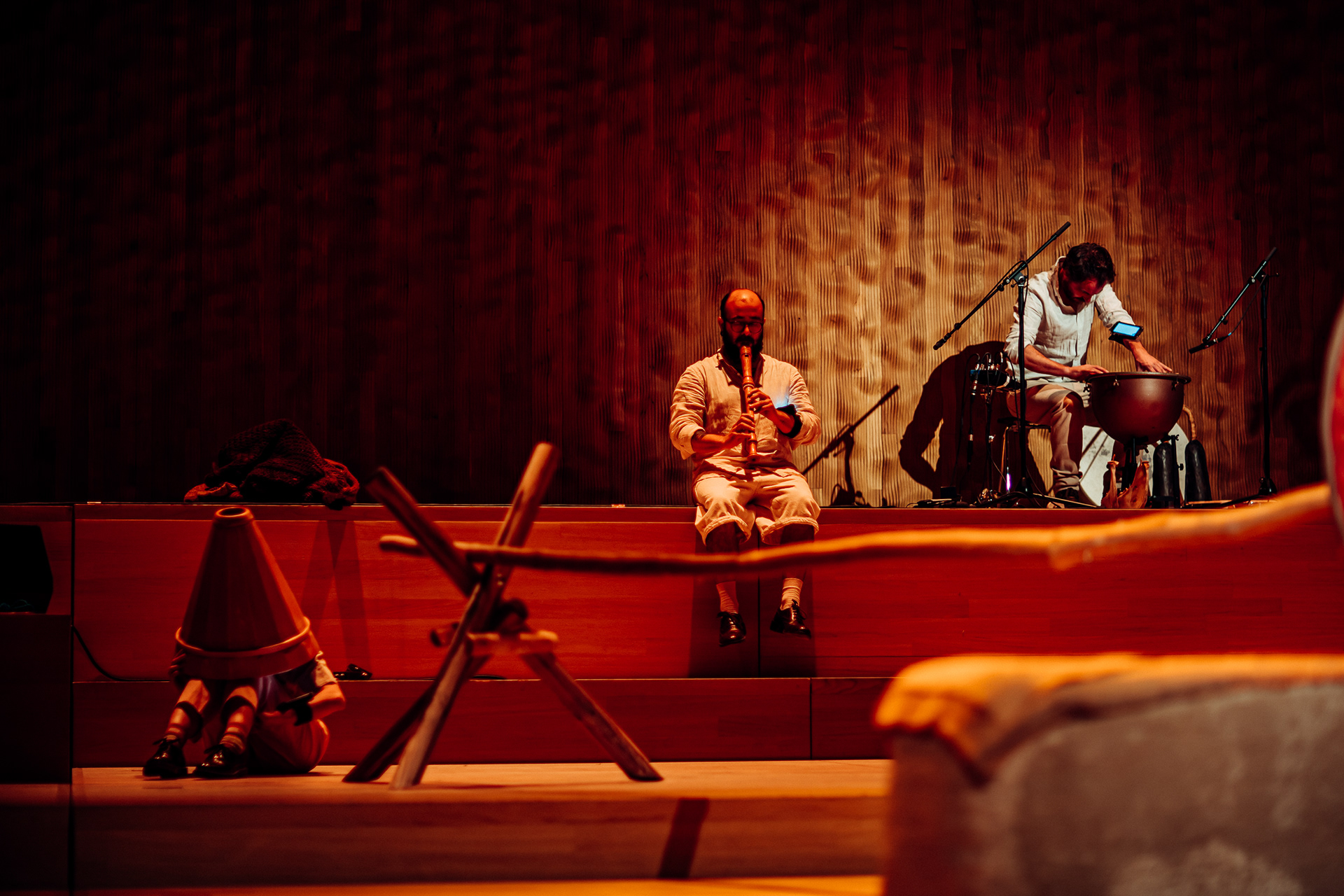 Through a series of experiments, the piece is incorporating objects and self-made instruments, silence, chance and noise to show life’s brutal reality, not just its naïve innocence.